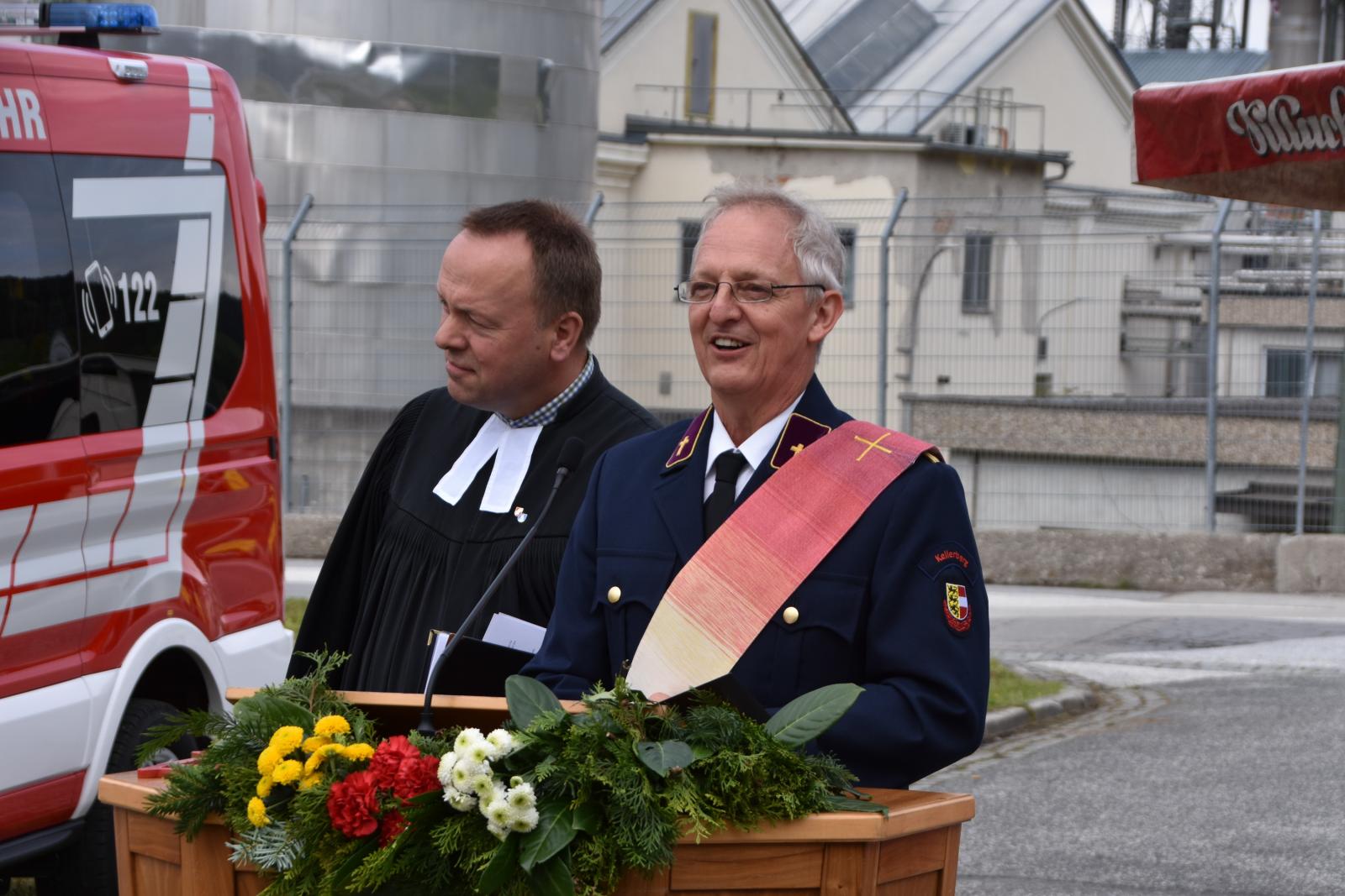 Nach den Ansprachen der Ehrengäste erfolgte die Fahrzeugsegnungen durch Diakon Alexander Krainer und Pfarrer Ralf Isensee.