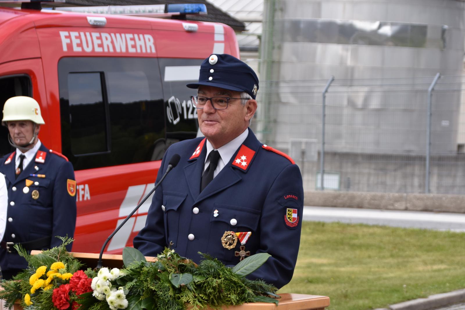 Nach Anmarsch der Gastfeuerwehren mit der Trachtenmusikkapelle und Meldung an den Landesfeuerwehrkommandanten begann der offizielle Festakt wo der Kommandant der FF Weissenstein, Hr. OBI Marco Pöcher alle anwesenden Fest- & Ehrengäste begrüßte und einen kurzen Rückblick in „135 Jahre – FF Weissenstein“ sowie zu den beiden neuen Einsatzfahrzeugen „MZFA & MTFA“ gab.
