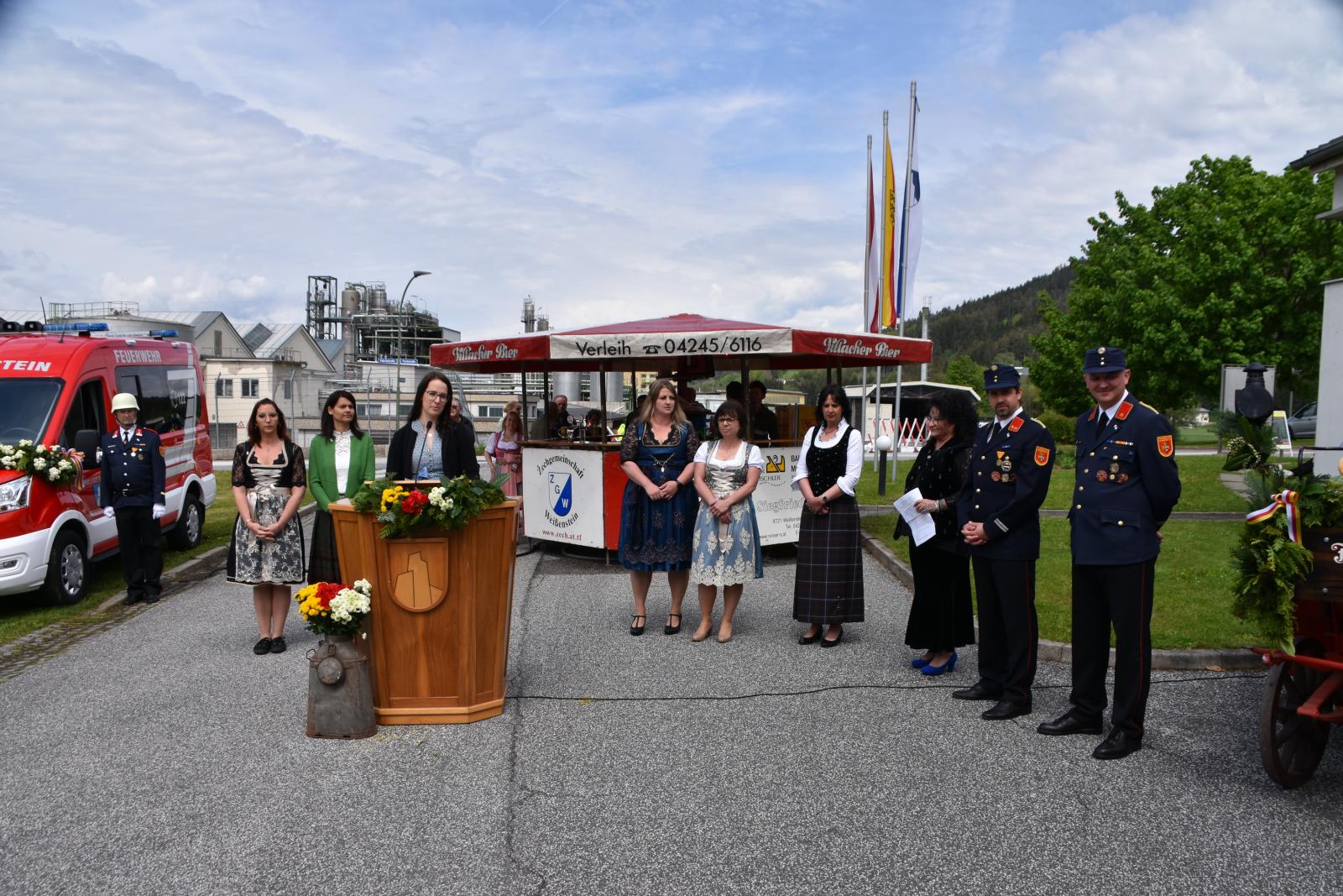 Nach Anmarsch der Gastfeuerwehren mit der Trachtenmusikkapelle und Meldung an den Landesfeuerwehrkommandanten begann der offizielle Festakt wo der Kommandant der FF Weissenstein, Hr. OBI Marco Pöcher alle anwesenden Fest- & Ehrengäste begrüßte und einen kurzen Rückblick in „135 Jahre – FF Weissenstein“ sowie zu den beiden neuen Einsatzfahrzeugen „MZFA & MTFA“ gab.