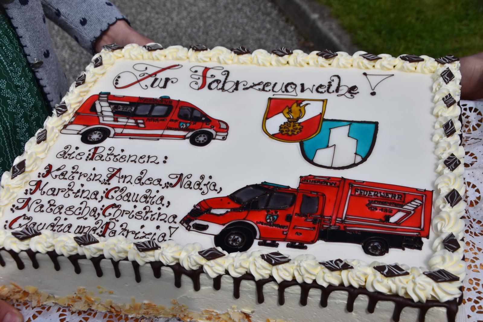 Danach wurde die FF-Weissenstein von den neun Fahrzeugpatinnen mit einem tollen Gedicht und einer Torte überrascht.