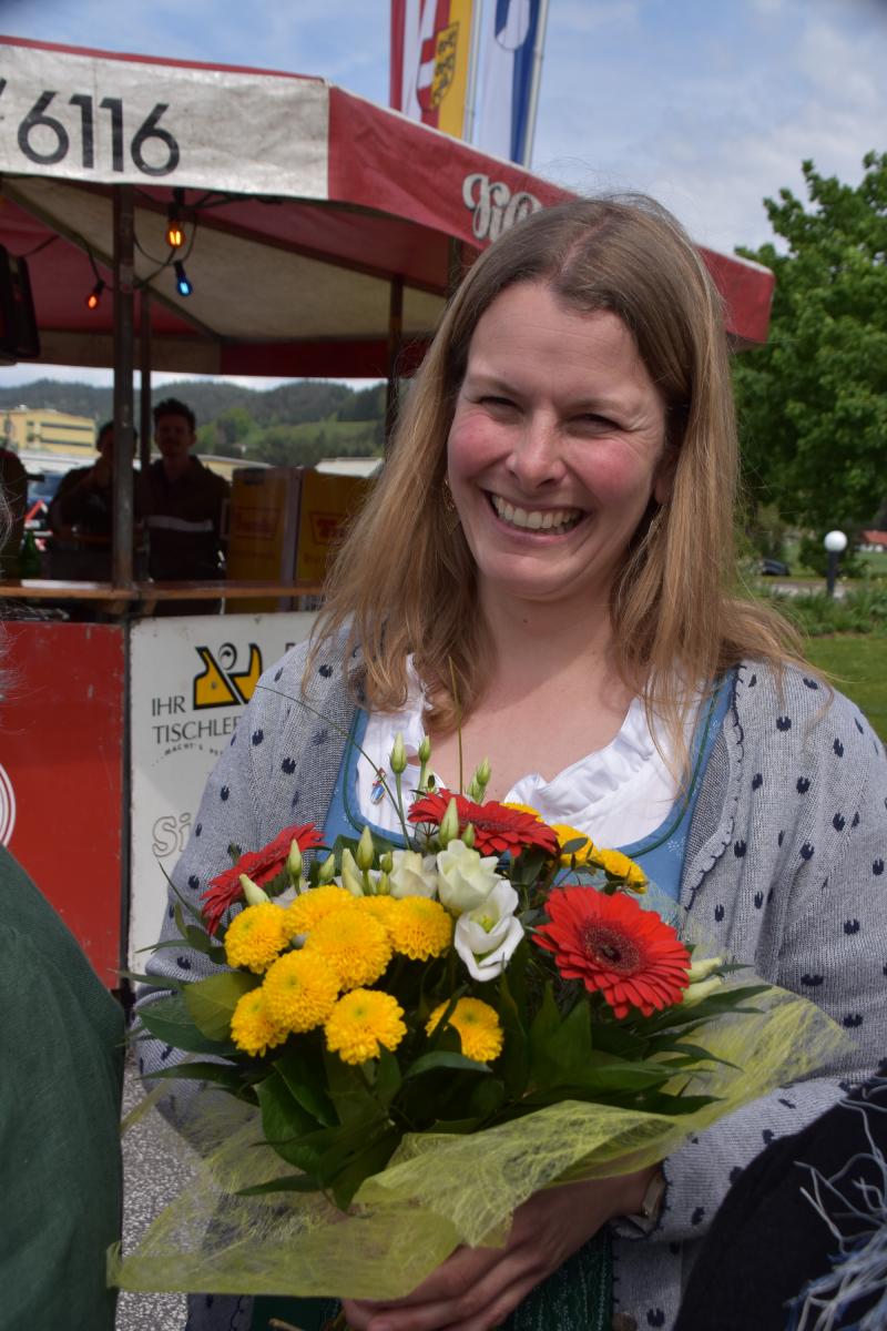 Als kleines Dankeschön für die Übernahme der Patenschaft vom MZFA & MTFA sowie der wunderschönen Blumendekoration der neuen Einsatzfahrzeuge und des Tisch- und Rednerpultschmuckes wurden ihnen vom Kommandanten und dessen Stellvertreter ein Blumenstrauß überreicht.
