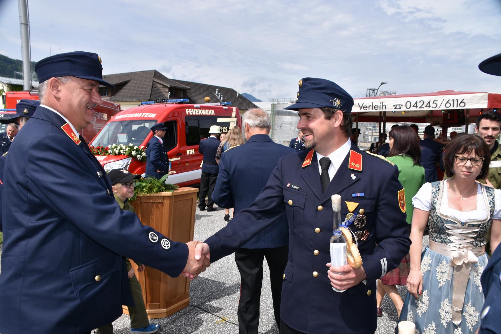 Im Anschluss an die Segnungen erfolgte dann durch den Bürgermeister der Marktgemeinde Weissenstein die offizielle Schlüsselübergabe der neuen Einsatzfahrzeuge an den Hauptmaschinisten der FF-W, LM Philipp Pacher.