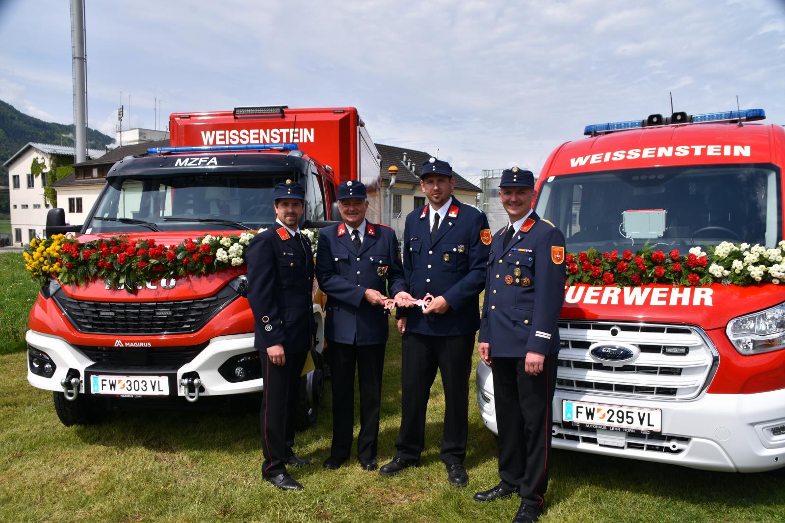 Im Anschluss an die Segnungen erfolgte dann durch den Bürgermeister der Marktgemeinde Weissenstein die offizielle Schlüsselübergabe der neuen Einsatzfahrzeuge an den Hauptmaschinisten der FF-W, LM Philipp Pacher.