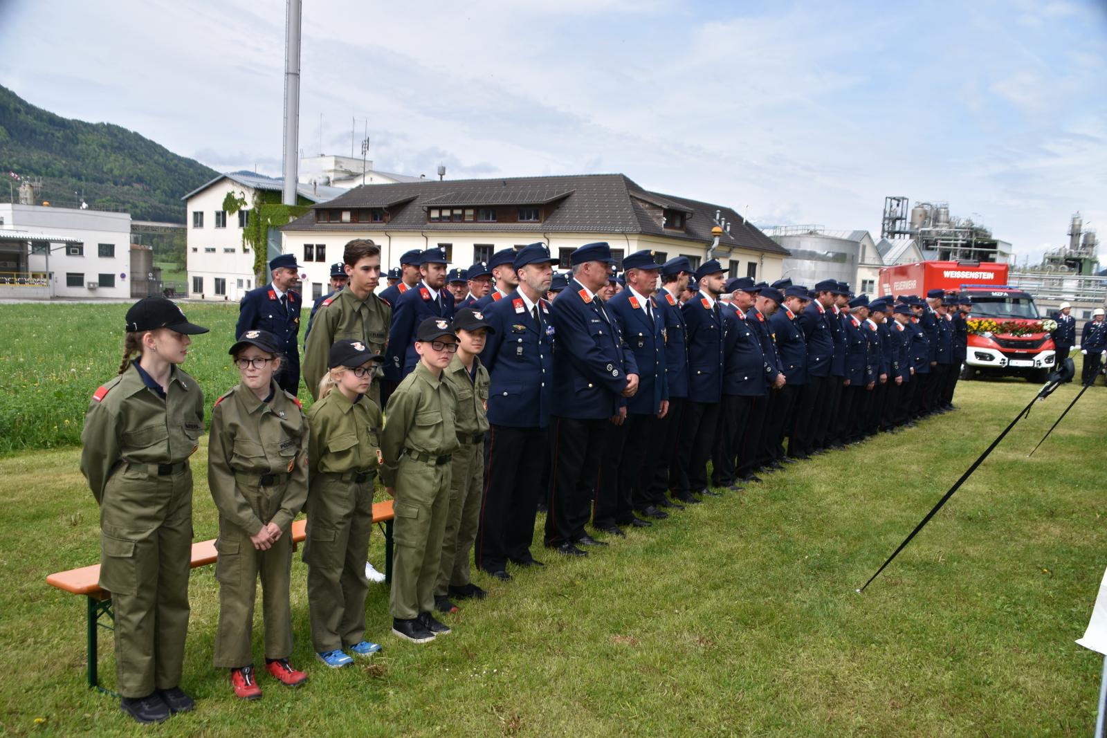 Nach Anmarsch der Gastfeuerwehren mit der Trachtenmusikkapelle und Meldung an den Landesfeuerwehrkommandanten begann der offizielle Festakt wo der Kommandant der FF Weissenstein, Hr. OBI Marco Pöcher alle anwesenden Fest- & Ehrengäste begrüßte und einen kurzen Rückblick in „135 Jahre – FF Weissenstein“ sowie zu den beiden neuen Einsatzfahrzeugen „MZFA & MTFA“ gab.
