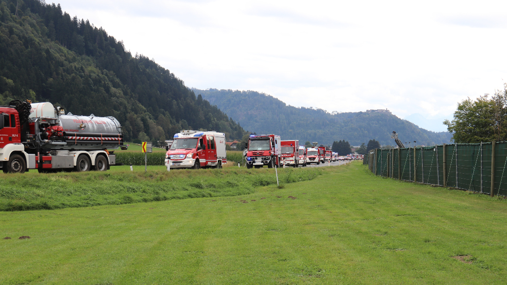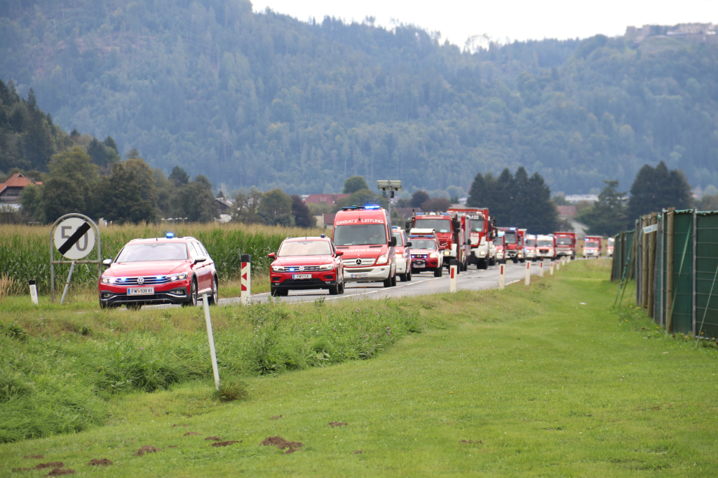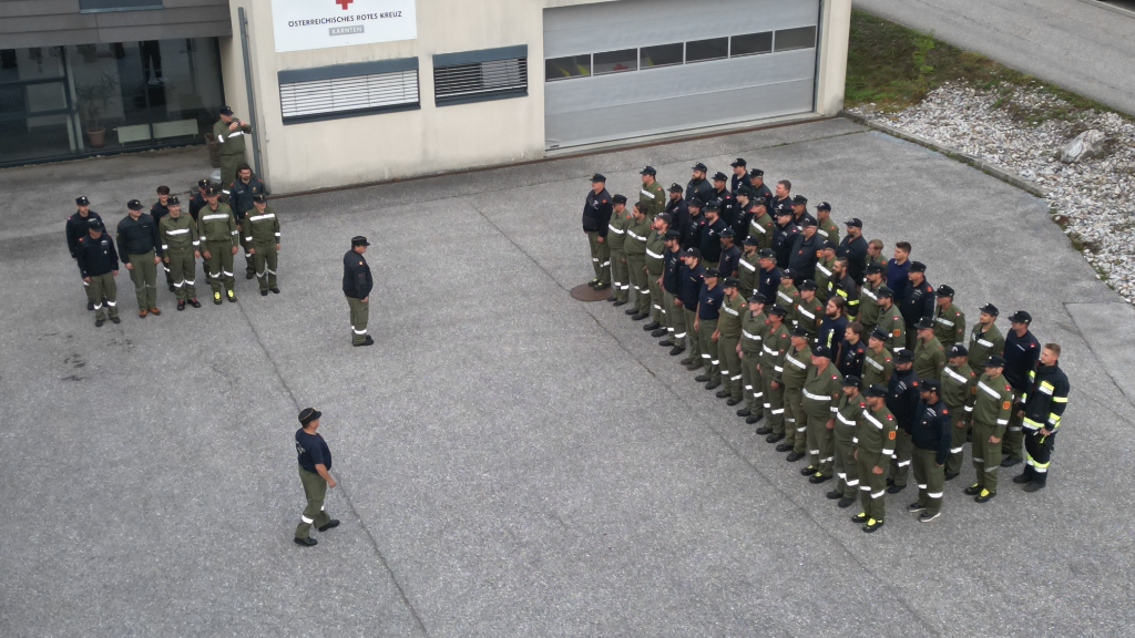 Nach Abschluss der Übung wurden alle KAT-Züge Kärntens in die Marktgemeinde Treffen verlegt, wo eine Schlusskundgebung abgehalten wurde.