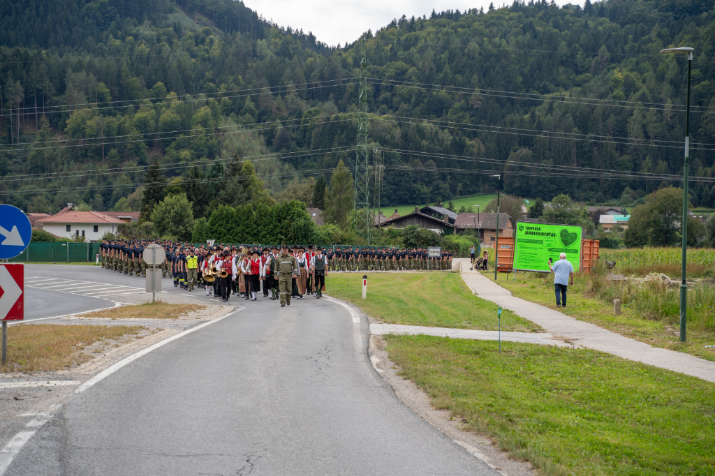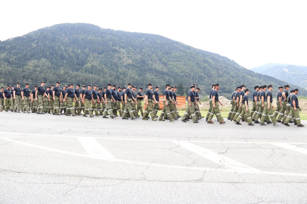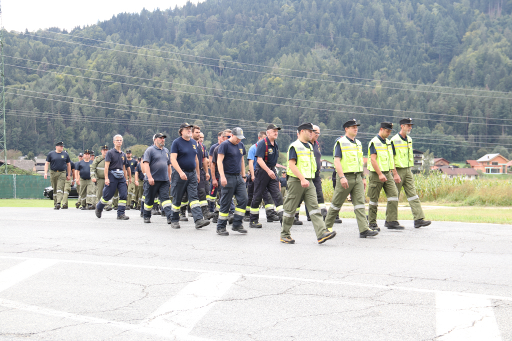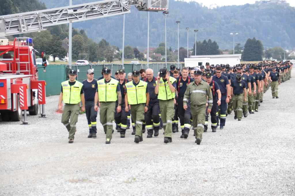 Nach Abschluss der Übung wurden alle KAT-Züge Kärntens in die Marktgemeinde Treffen verlegt, wo eine Schlusskundgebung abgehalten wurde.